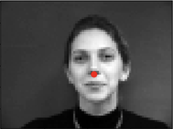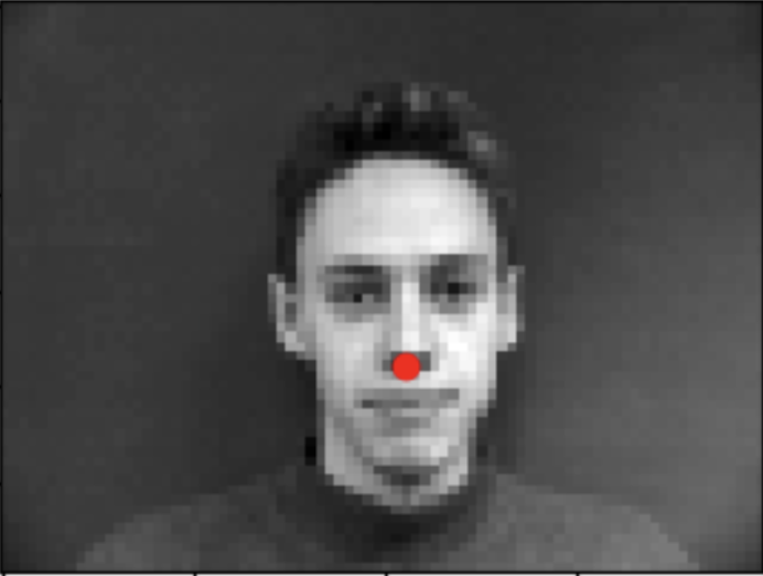 The first step was to detect the nose feature using a convolutional neural network. Example images from the dataset and their annotated nose feature are shown below.